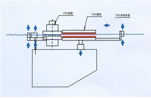PVC下加熱板隨著形成臺模具的上下運動作相應(yīng)的間歇運動,當PVC夾持移動時下加熱板處于下止點(上下加熱板有間隙),減少PVC與加熱板接觸,PVC不粘片。
